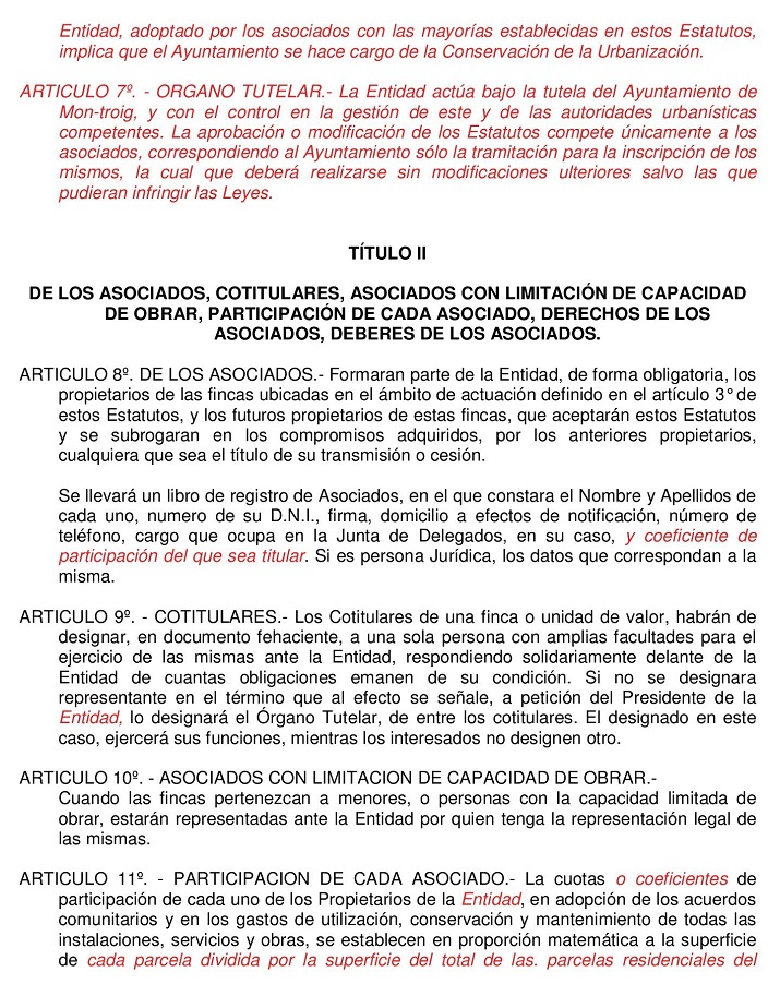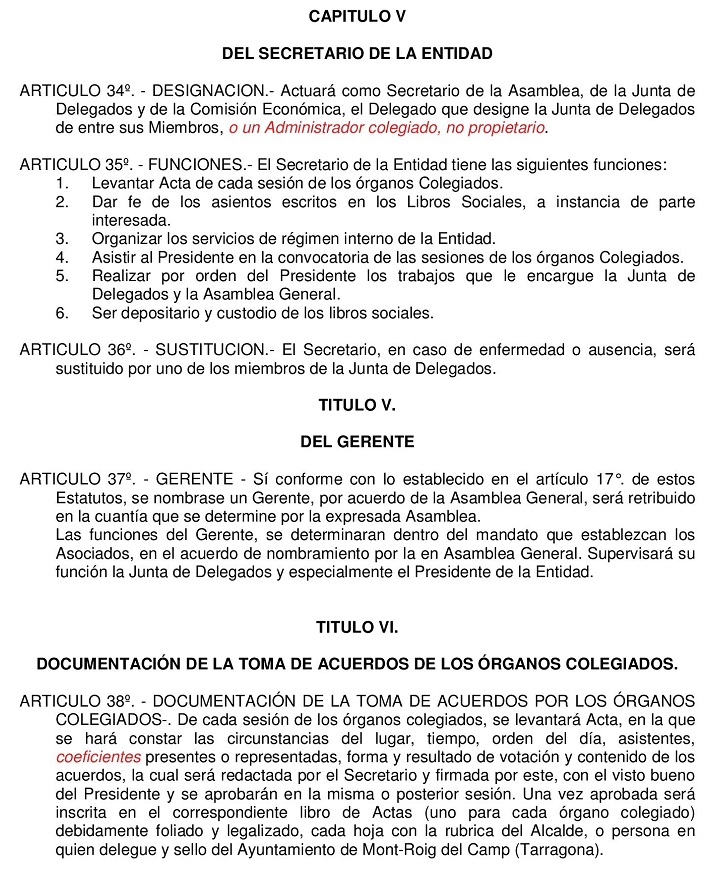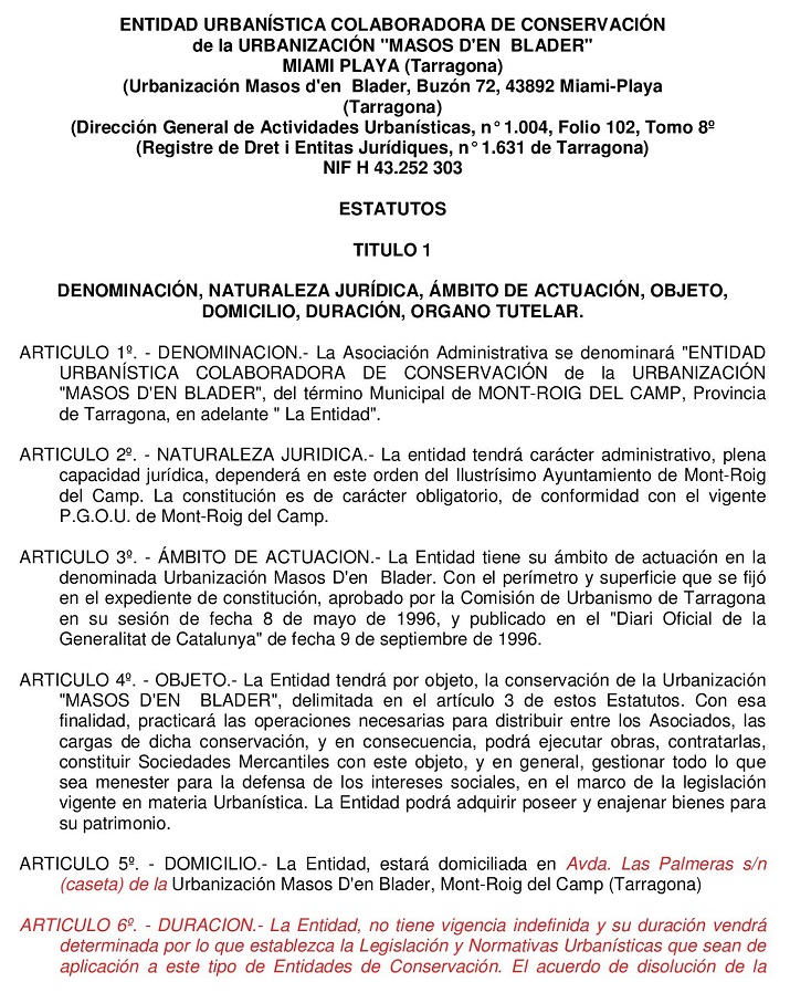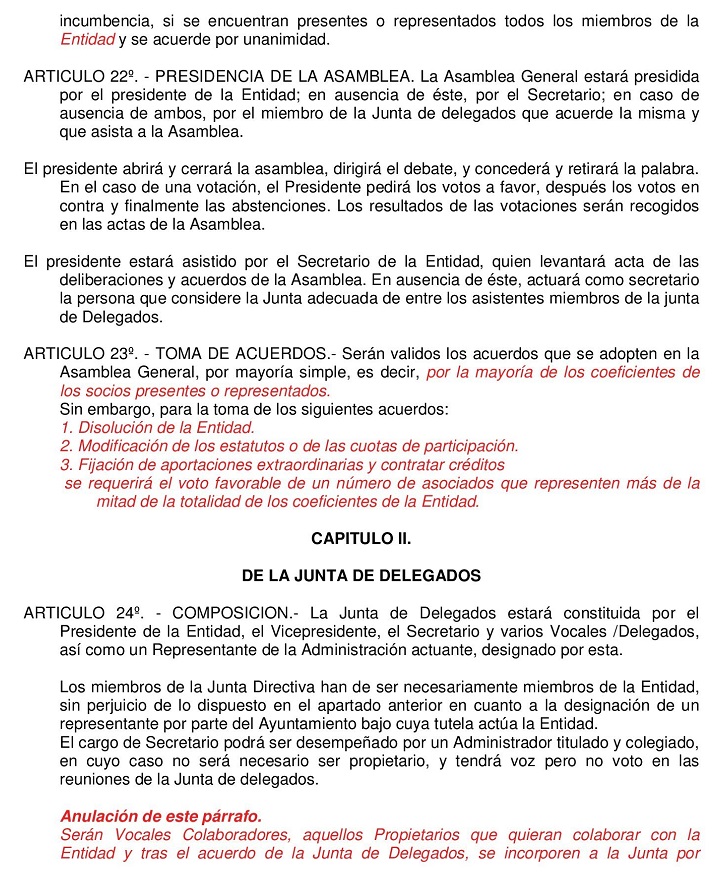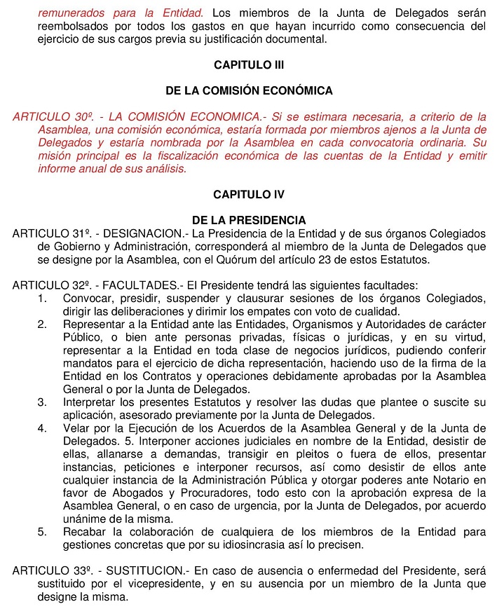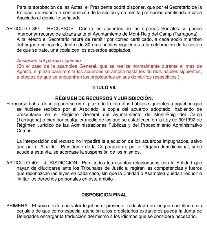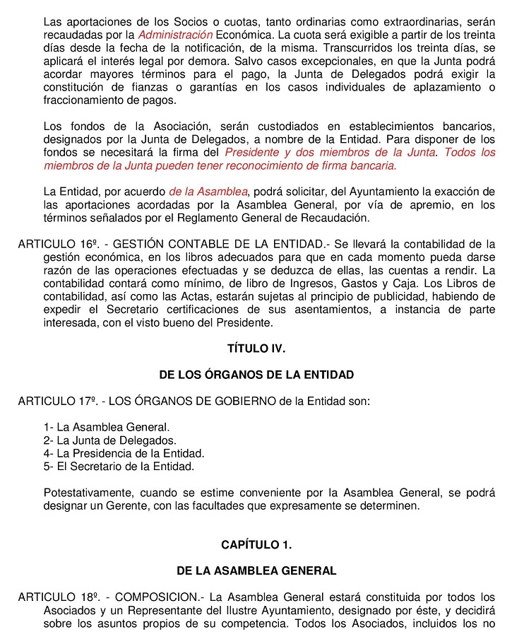 Estos Estatutos fueron modificados y aprobados por mayoria de asistentes en Asamblea Extraordinaria del 19 de Agosto de 2006. No pudieron ser ratificados por carecer de la mayoria absoluta requerida en anteriores Estatutos.