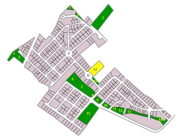 En verde figuran todas las zonas verdes de la Urbanización. El titular catastral de las zonas verdes de la Urbanización es el propio Ayuntamiento según consta en el Registro Catastral.